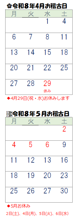 🌸4月・5月お稽古日🎏