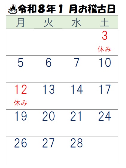 ◆年始は、1月5日(月)よりお稽古いたします🏇